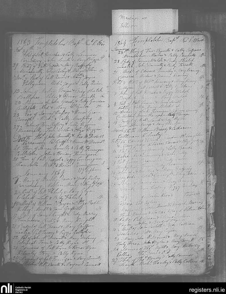 Templetoher; County of Galway; Archdiocese of Tuam. Baptisms, Nov. 1863 to Mar. 1864