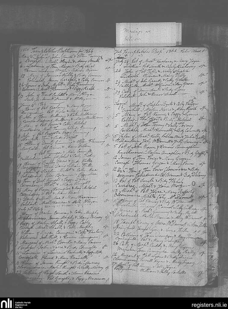 Templetoher; County of Galway; Archdiocese of Tuam. Baptisms, May 1866 to Aug. 1866