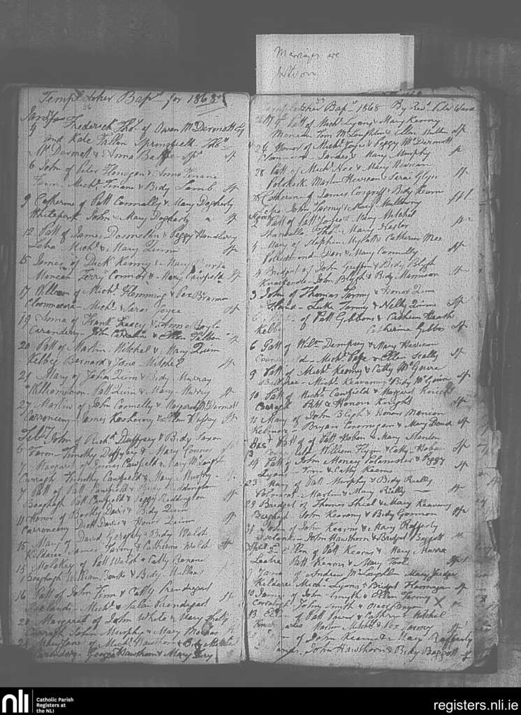 Templetoher; County of Galway; Archdiocese of Tuam. Baptisms, Jan. 1868 to Apr. 1868