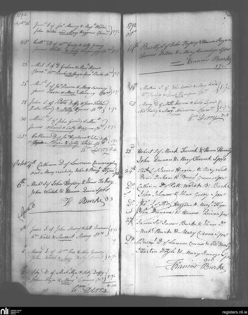 Tuam; County of Galway; Archdiocese of Tuam. Baptisms, Sep. 1792 to Oct. 1792