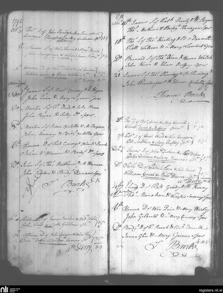 Tuam; County of Galway; Archdiocese of Tuam. Baptisms, Oct. 1792 to Dec. 1792