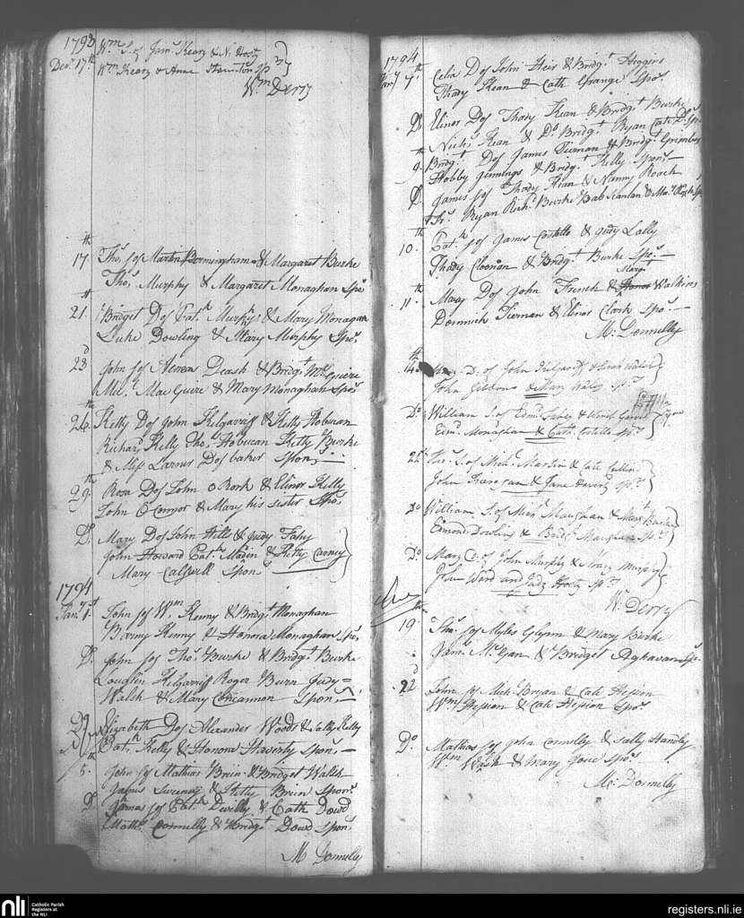Tuam; County of Galway; Archdiocese of Tuam. Baptisms, Dec. 1793 to Jan. 1794