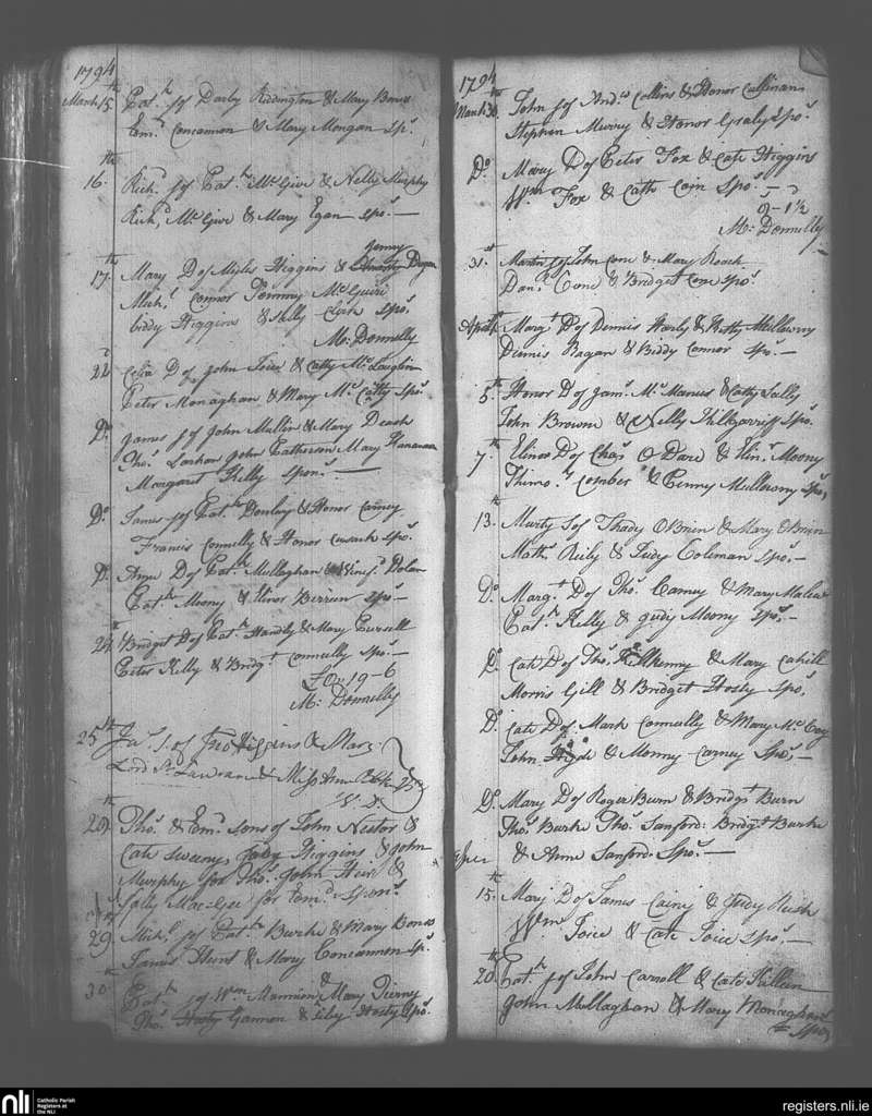 Tuam; County of Galway; Archdiocese of Tuam. Baptisms, Mar. 1794 to Apr. 1794