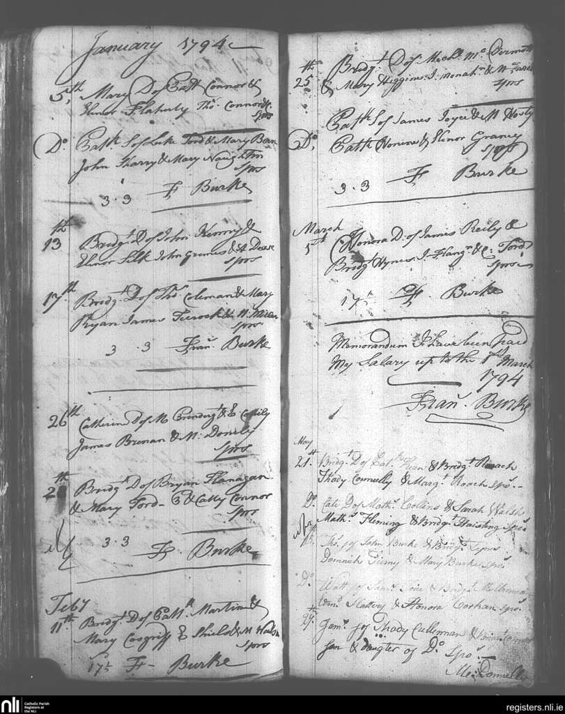 Tuam; County of Galway; Archdiocese of Tuam. Baptisms, Jan. 1794 to May 1794