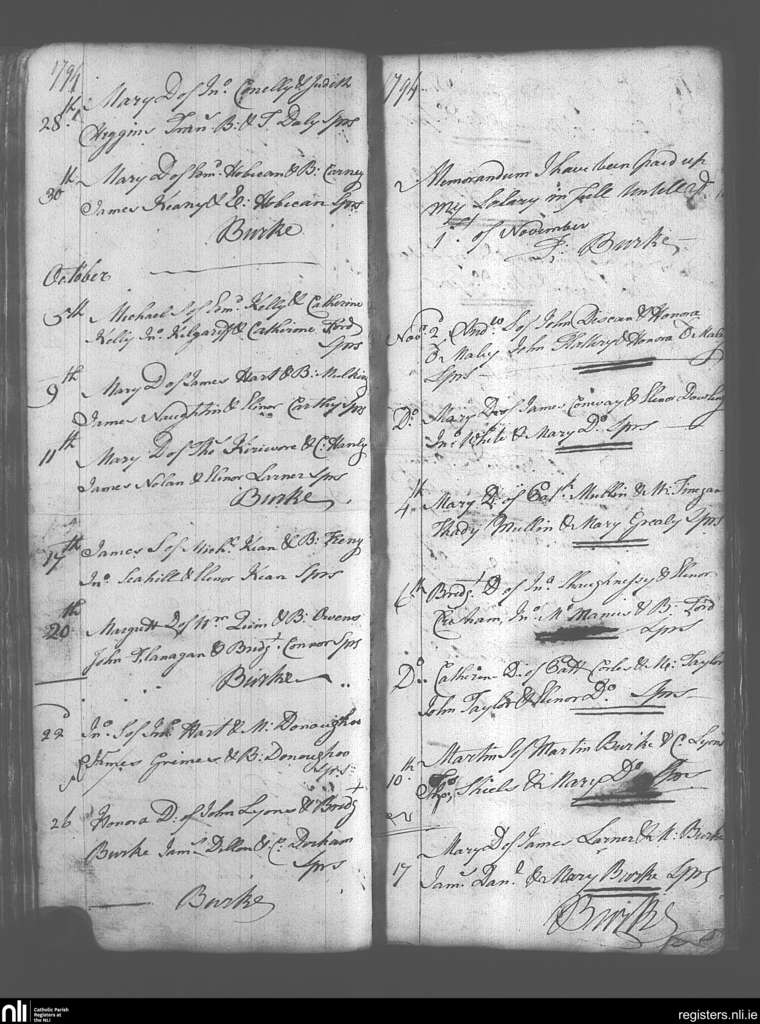 Tuam; County of Galway; Archdiocese of Tuam. Baptisms, Sep. 1794 to Nov. 1794