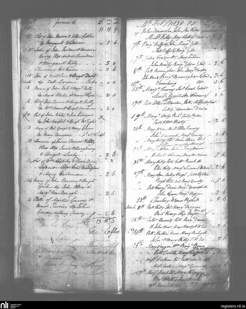 Tuam; County of Galway; Archdiocese of Tuam. Baptisms, Feb. 1830 to Mar. 1830