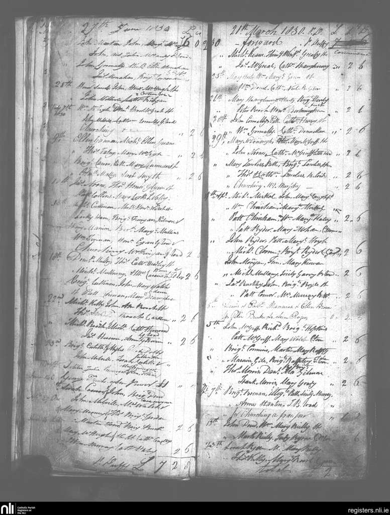 Tuam; County of Galway; Archdiocese of Tuam. Baptisms, Mar. 1830 to July 1830