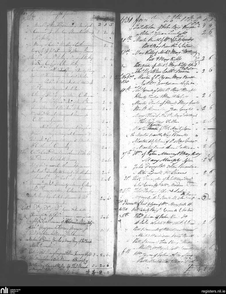 Tuam; County of Galway; Archdiocese of Tuam. Baptisms, Mar. 1830 to Dec. 1830