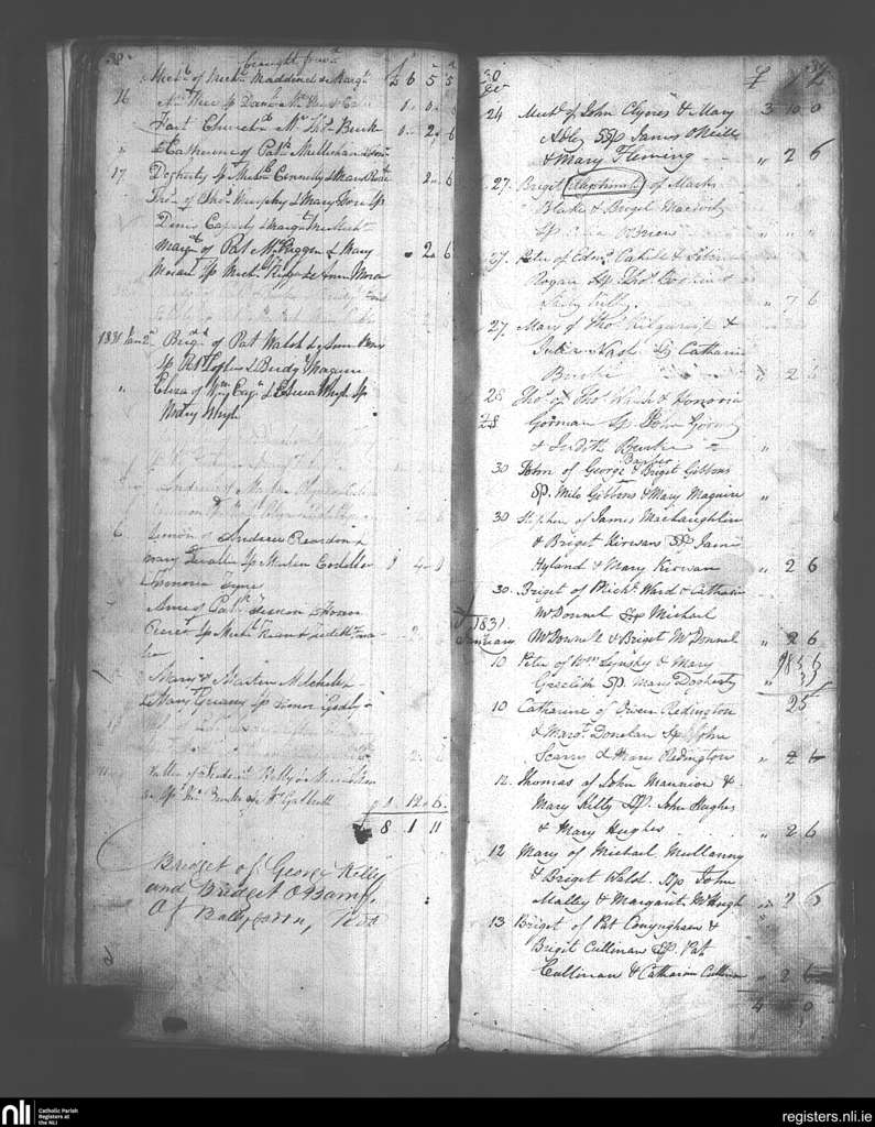 Tuam; County of Galway; Archdiocese of Tuam. Baptisms, Dec. 1830 to Jan. 1831