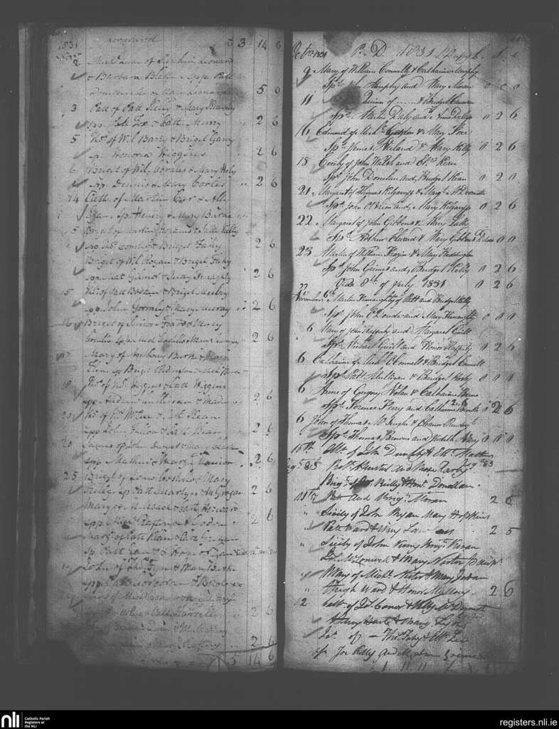 Tuam; County of Galway; Archdiocese of Tuam. Baptisms, Aug. 1831 to Nov. 1831