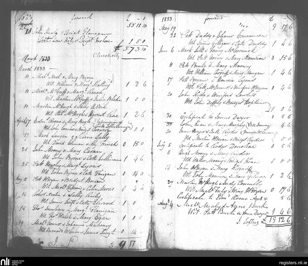 Tuam; County of Galway; Archdiocese of Tuam. Marriages, Feb. 1833 to Aug. 1833