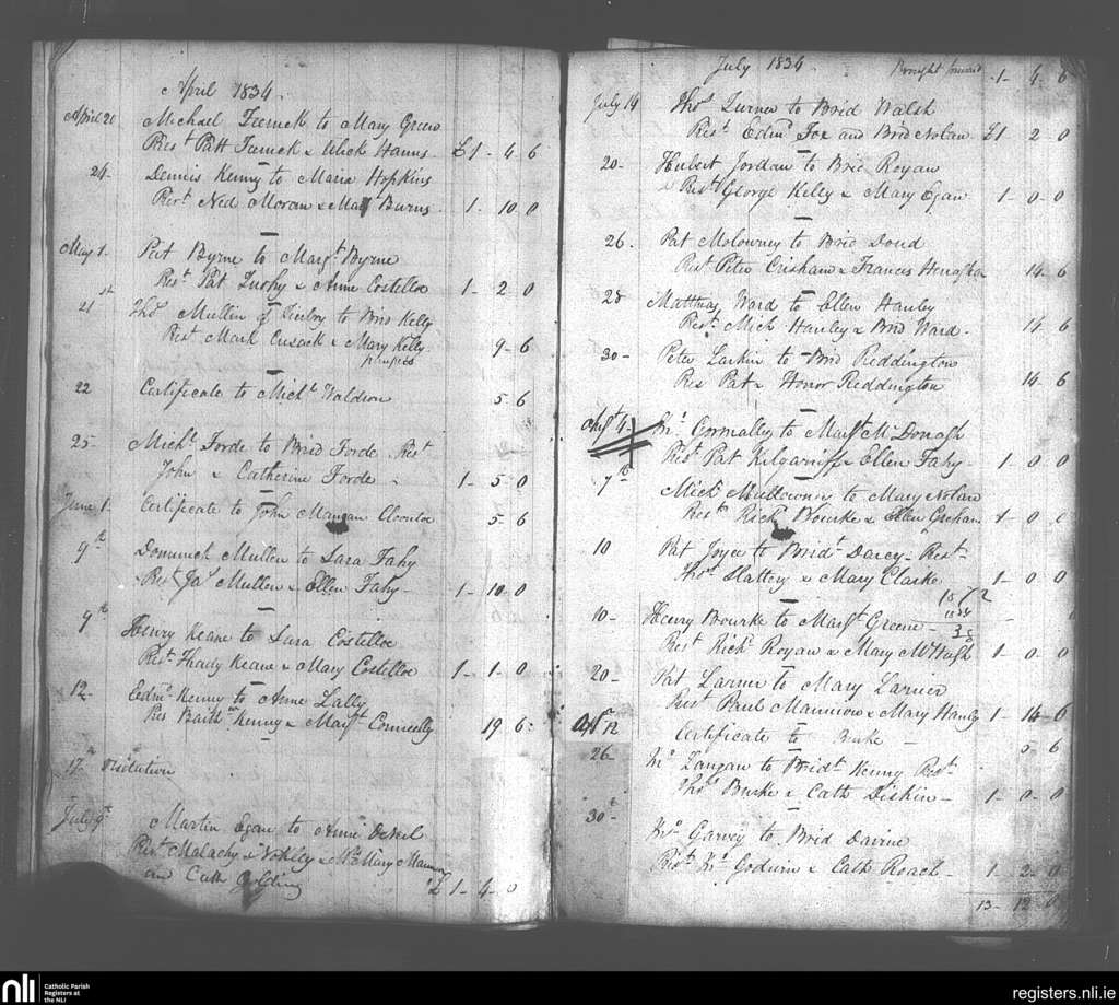 Tuam; County of Galway; Archdiocese of Tuam. Marriages, Apr. 1834 to Oct. 1834