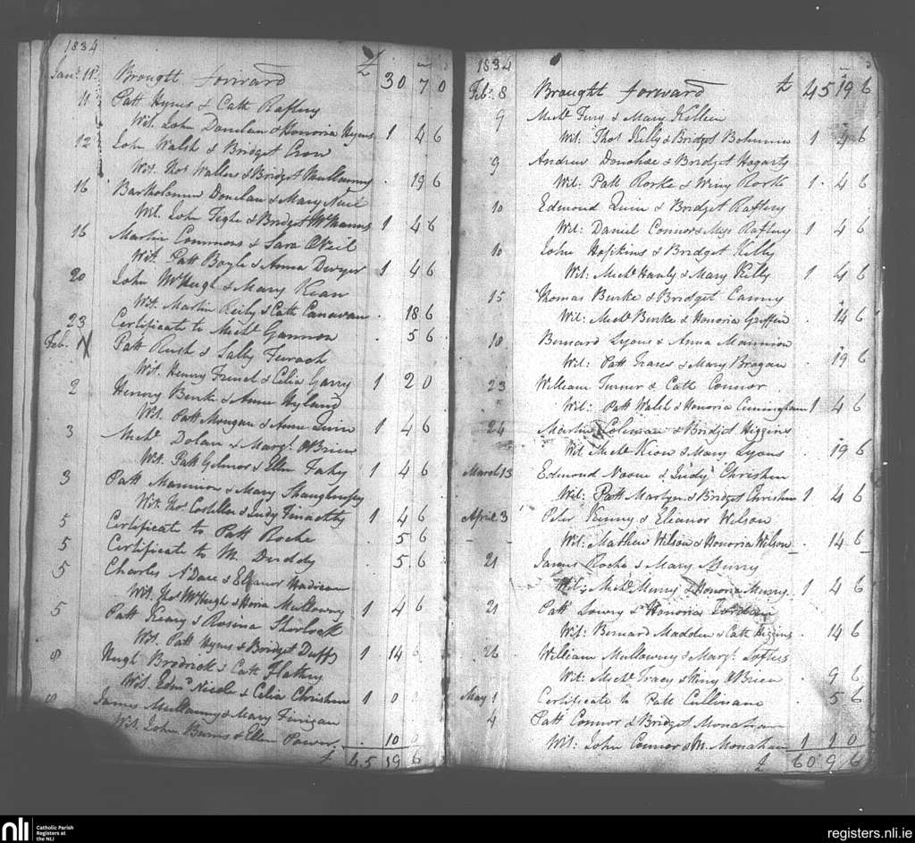 Tuam; County of Galway; Archdiocese of Tuam. Marriages, Jan. 1834 to May 1834