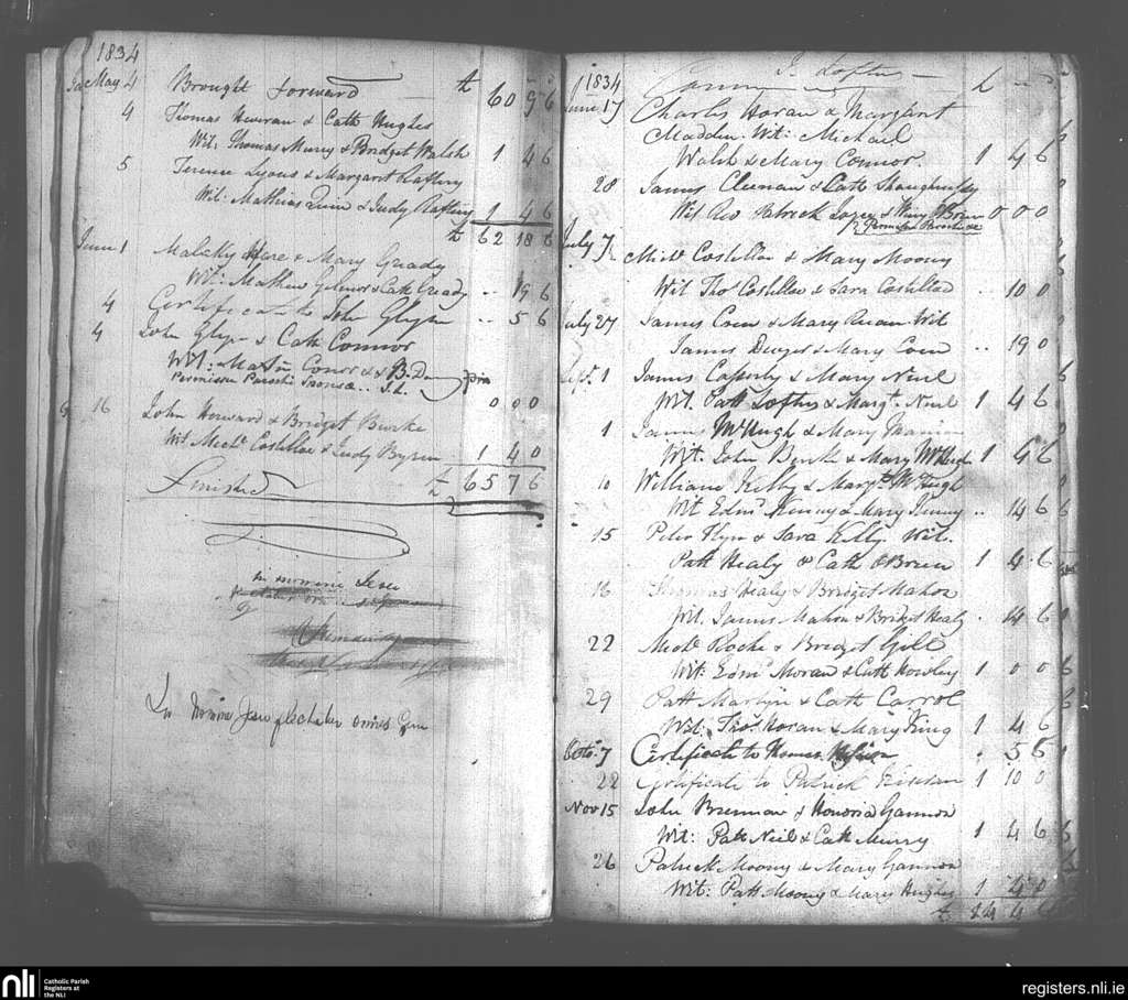 Tuam; County of Galway; Archdiocese of Tuam. Marriages, May 1834 to Nov. 1834