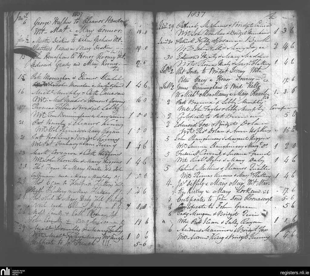 Tuam; County of Galway; Archdiocese of Tuam. Marriages, Jan. 1837 to Feb. 1837