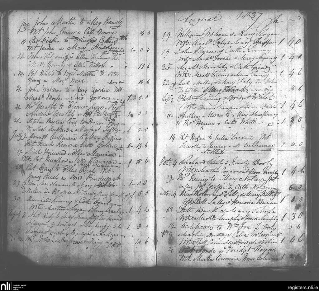 Tuam; County of Galway; Archdiocese of Tuam. Marriages, June 1837 to Nov. 1837