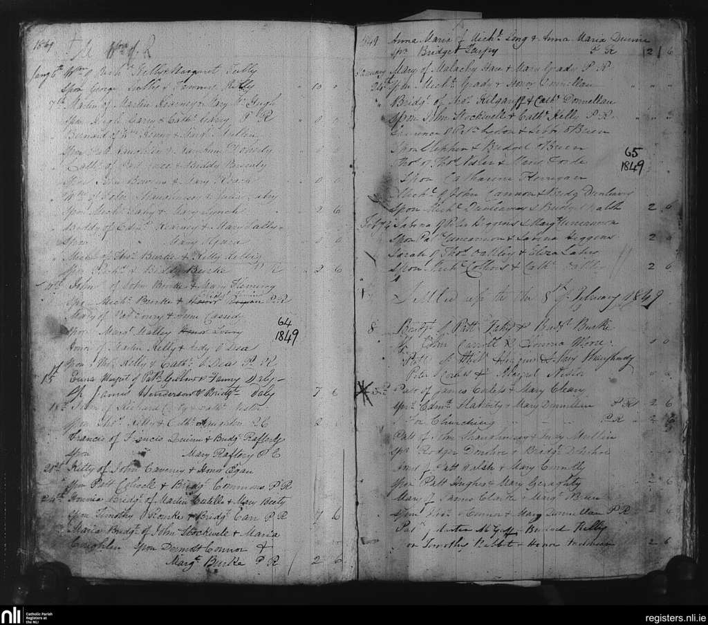 Tuam; County of Galway; Archdiocese of Tuam. Baptisms, Jan. 1849 to Feb. 1849