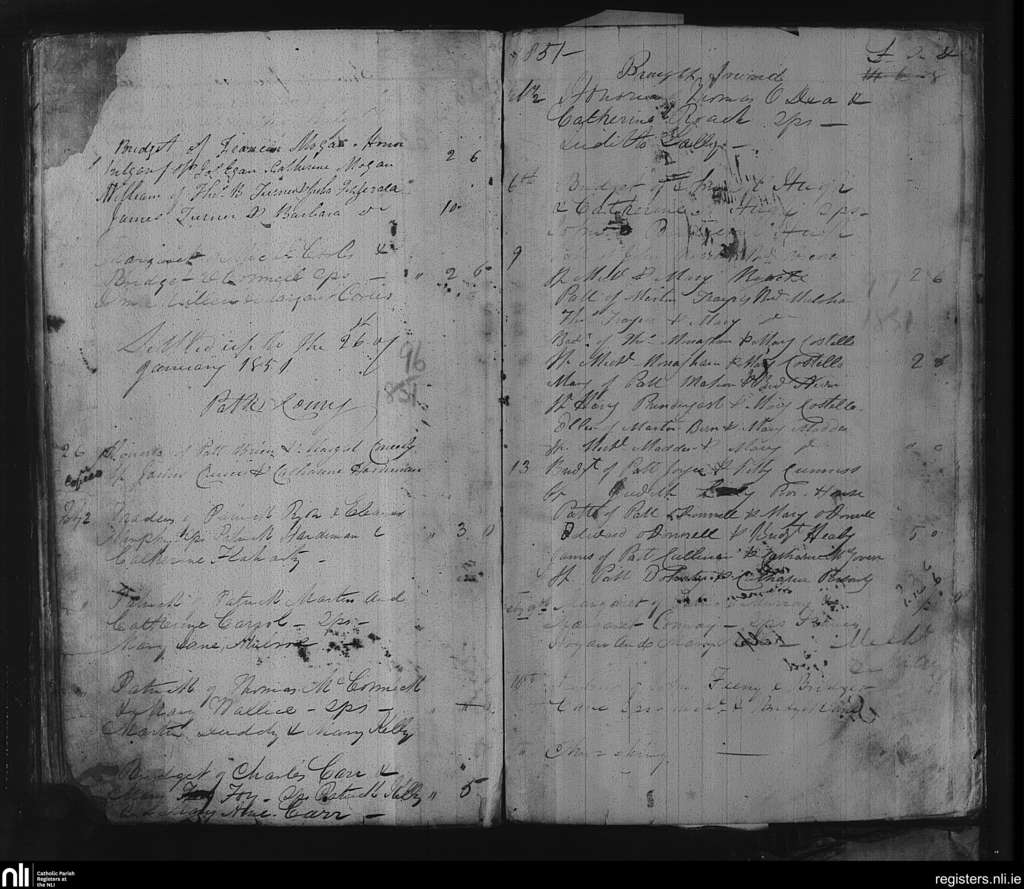 Tuam; County of Galway; Archdiocese of Tuam. Baptisms, Jan. 1851 to Feb. 1851