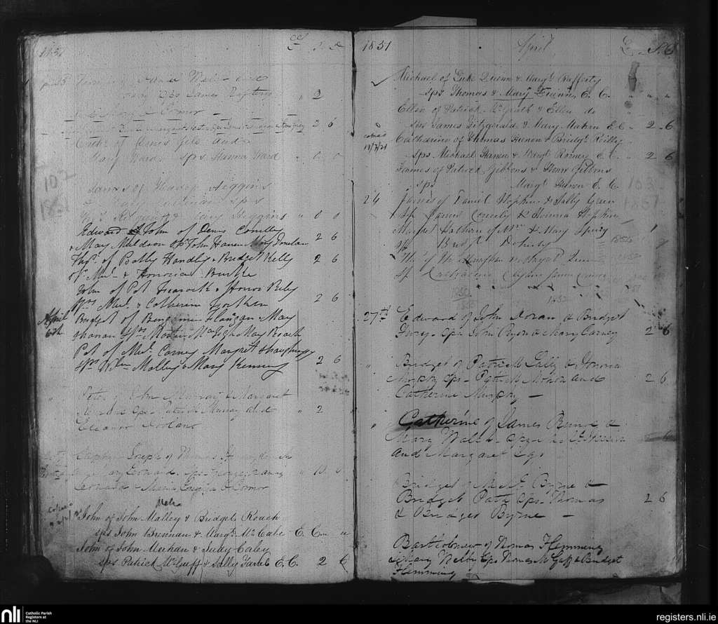 Tuam; County of Galway; Archdiocese of Tuam. Baptisms, Apr. 1851