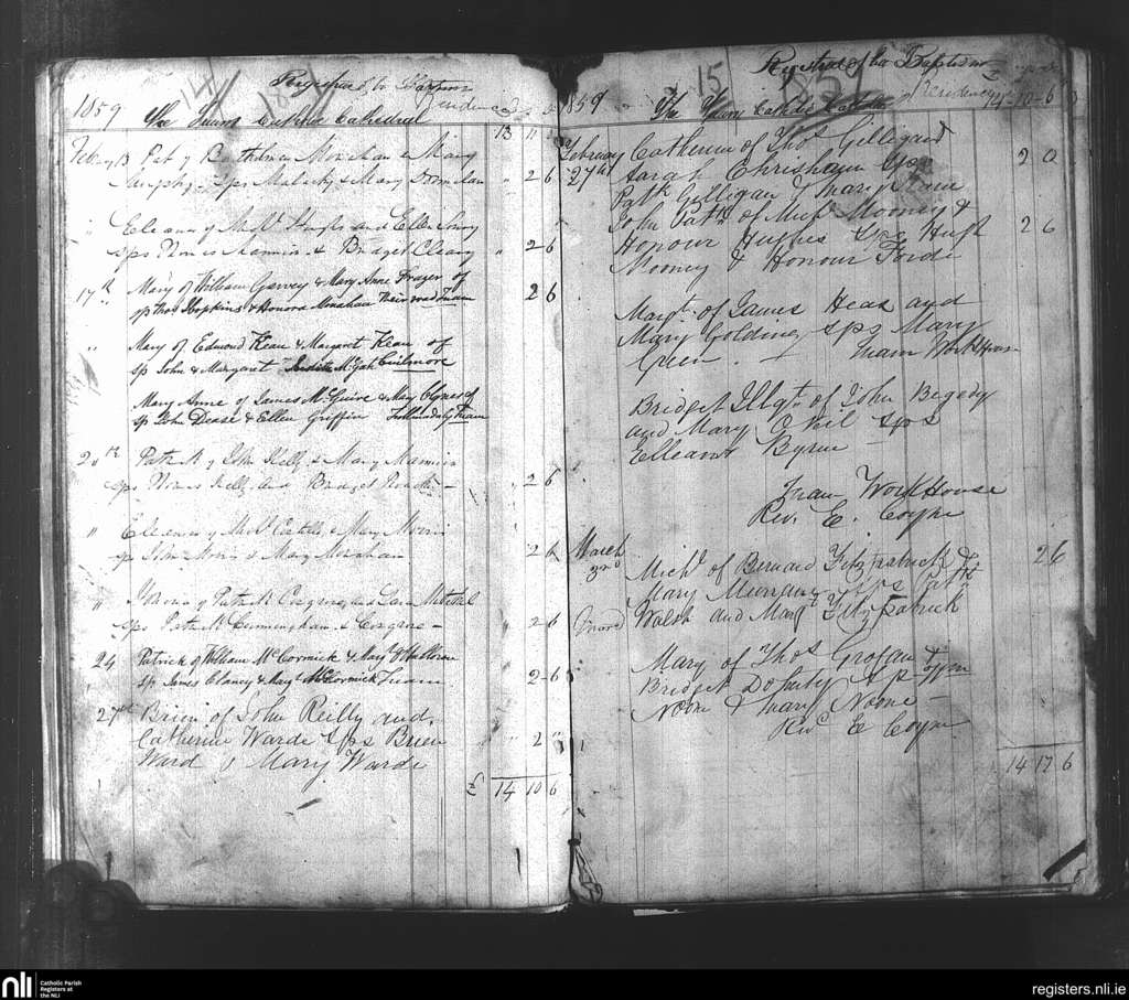 Tuam; County of Galway; Archdiocese of Tuam. Baptisms, Feb. 1859 to Mar. 1859