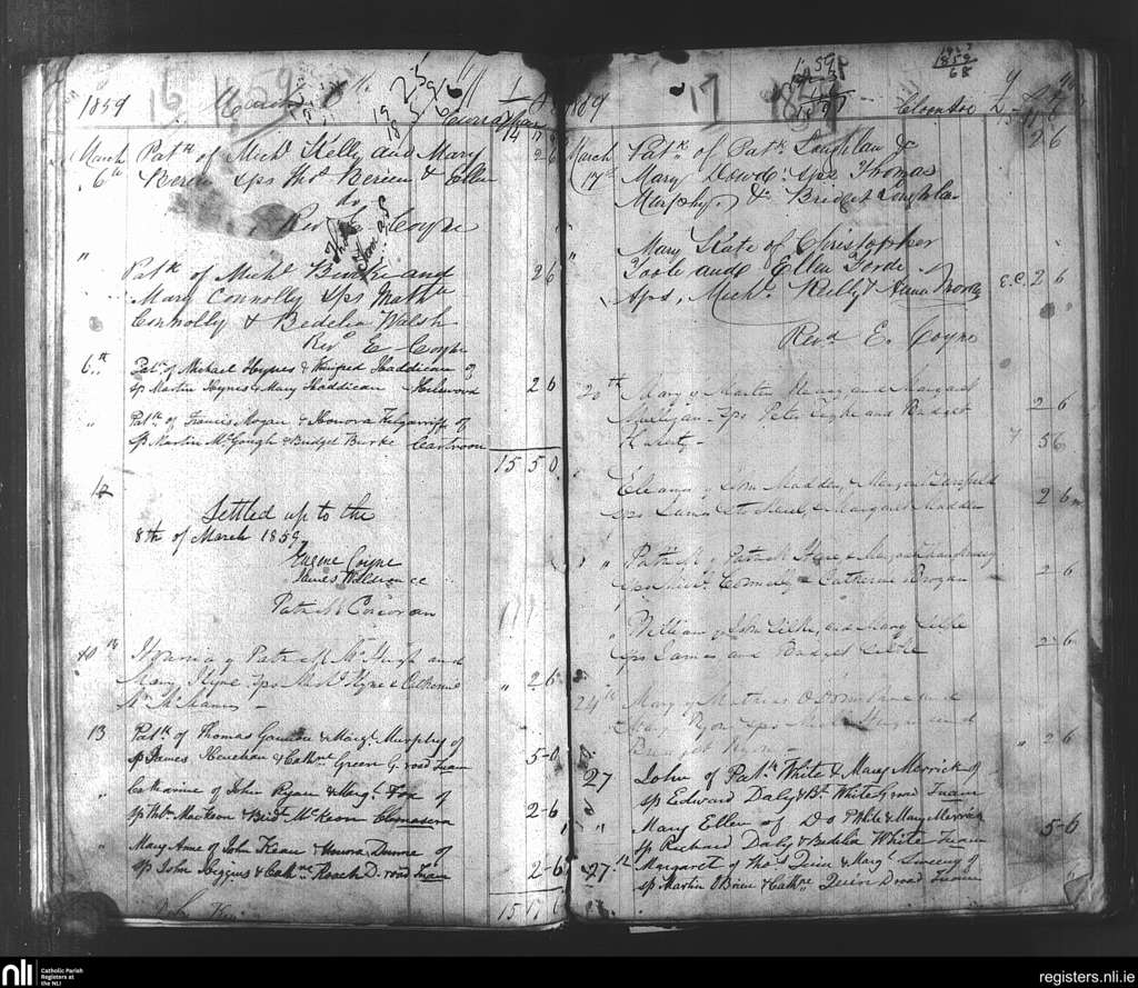 Tuam; County of Galway; Archdiocese of Tuam. Baptisms, Mar. 1859