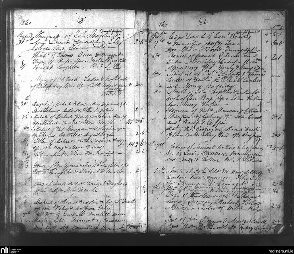 Tuam; County of Galway; Archdiocese of Tuam. Baptisms, Aug. 1860 to Oct. 1860