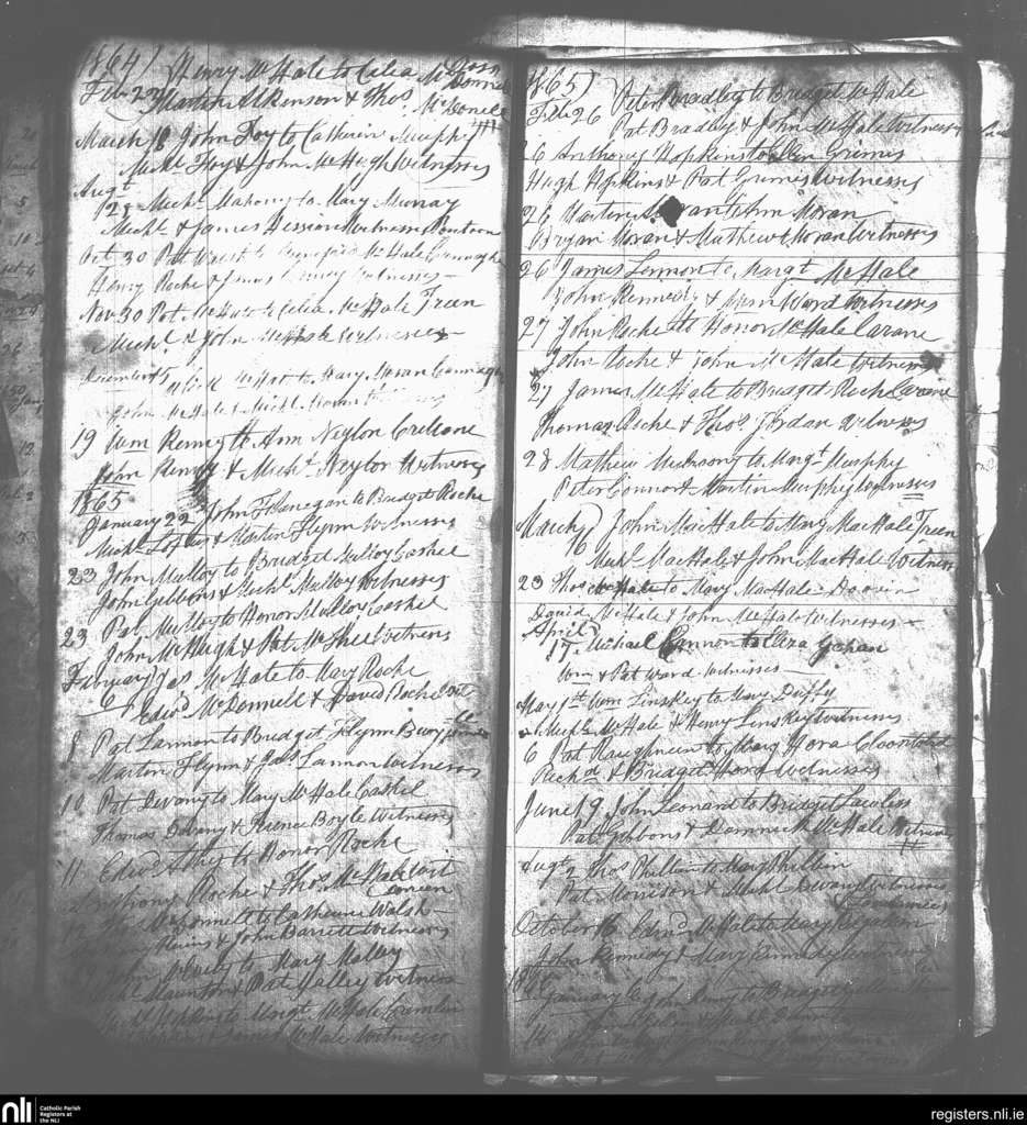Turlough; County of Mayo; Archdiocese of Tuam. Marriages, Feb. 1864 to Jan. 1866