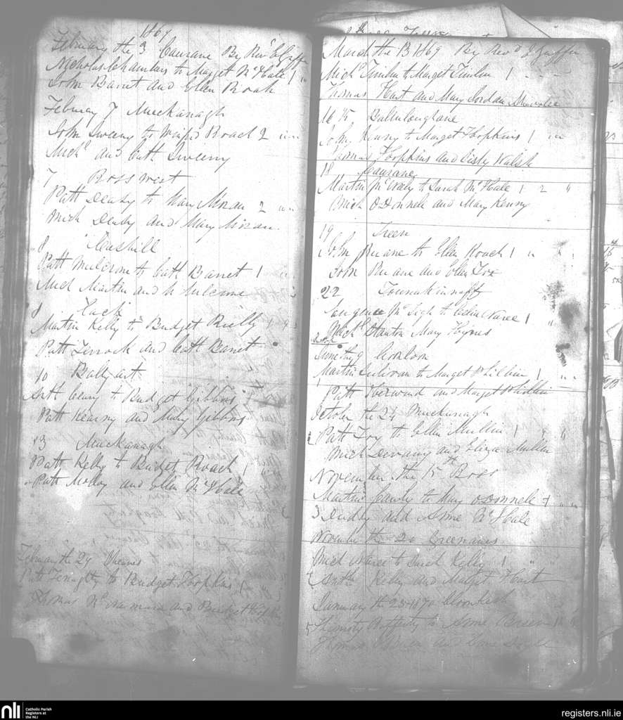 Turlough; County of Mayo; Archdiocese of Tuam. Marriages, Feb. 1869 to Jan. 1870
