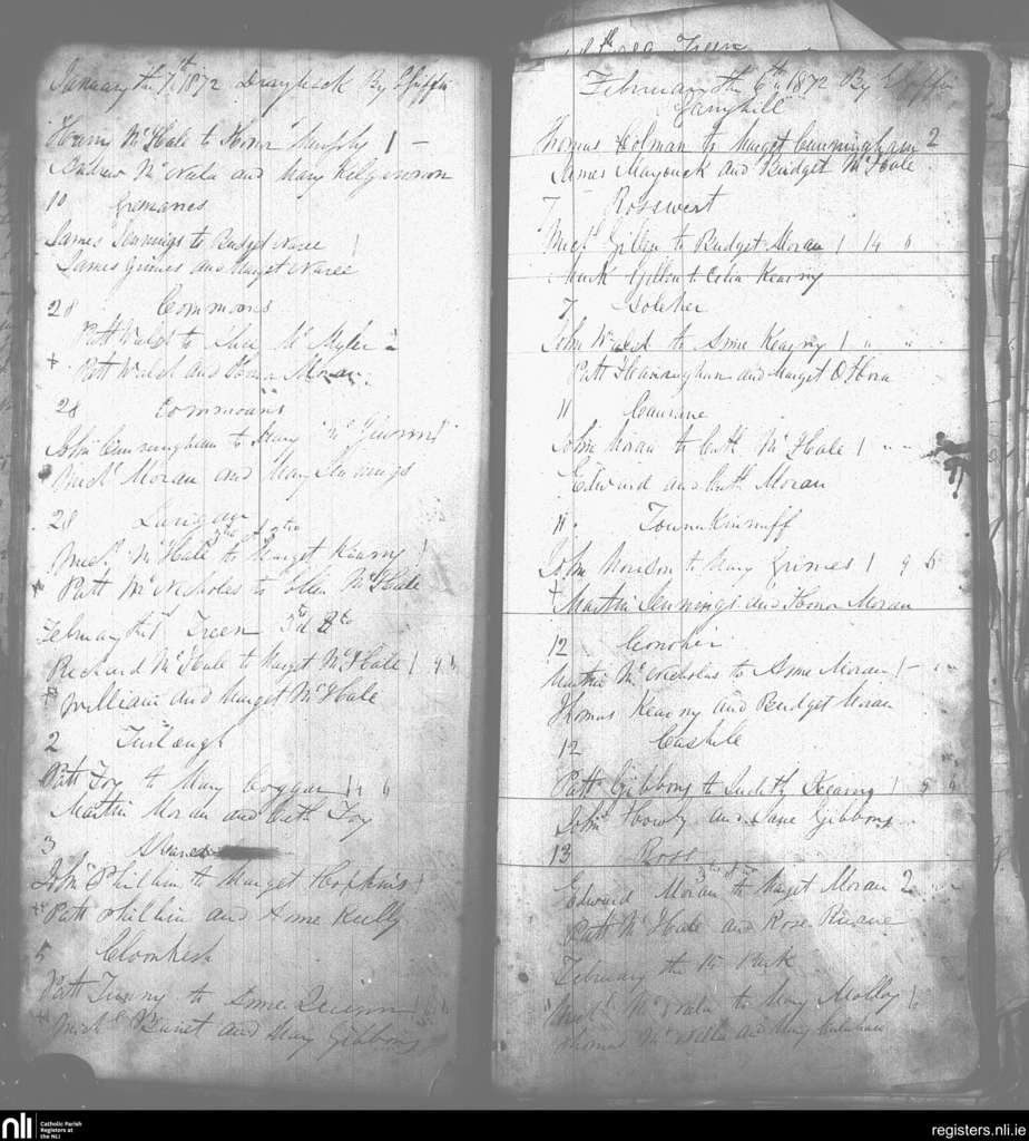 Turlough; County of Mayo; Archdiocese of Tuam. Marriages, Jan. 1872 to Feb. 1872