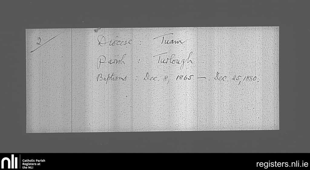Turlough; County of Mayo; Archdiocese of Tuam. Baptisms