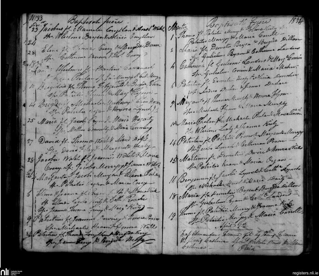 Abbeyside and Ring; County of Waterford; Diocese of Waterford and Lismore. Baptisms, Dec. 1833 to Apr. 1834