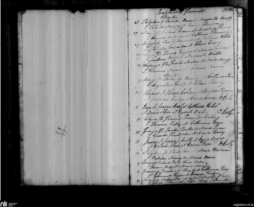 Abbeyside and Ring; County of Waterford; Diocese of Waterford and Lismore. Baptisms, Mar. 1842 to Apr. 1842