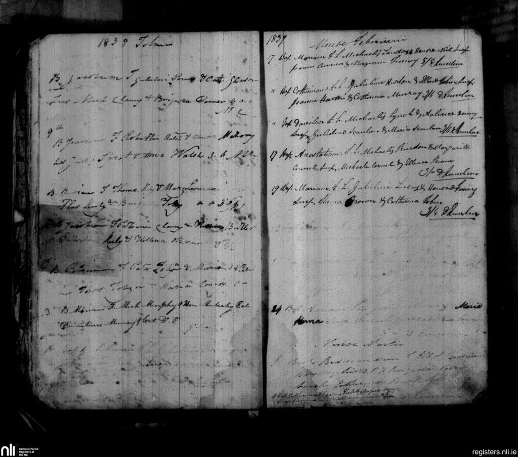 Aglish; County of Waterford; Diocese of Waterford and Lismore. Baptisms, Feb. 1839 to Mar. 1839
