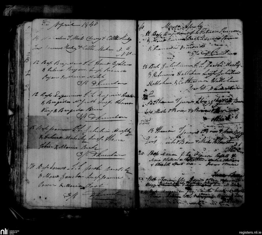 Aglish; County of Waterford; Diocese of Waterford and Lismore. Baptisms, Apr. 1840