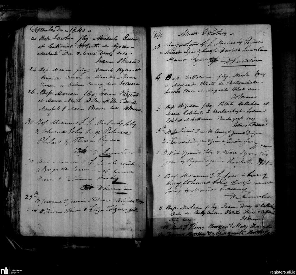 Aglish; County of Waterford; Diocese of Waterford and Lismore. Baptisms, Sep. 1840 to Oct. 1840