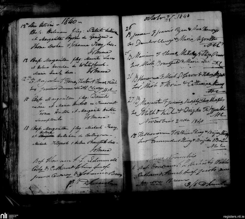 Aglish; County of Waterford; Diocese of Waterford and Lismore. Baptisms, Oct. 1840 to Nov. 1840
