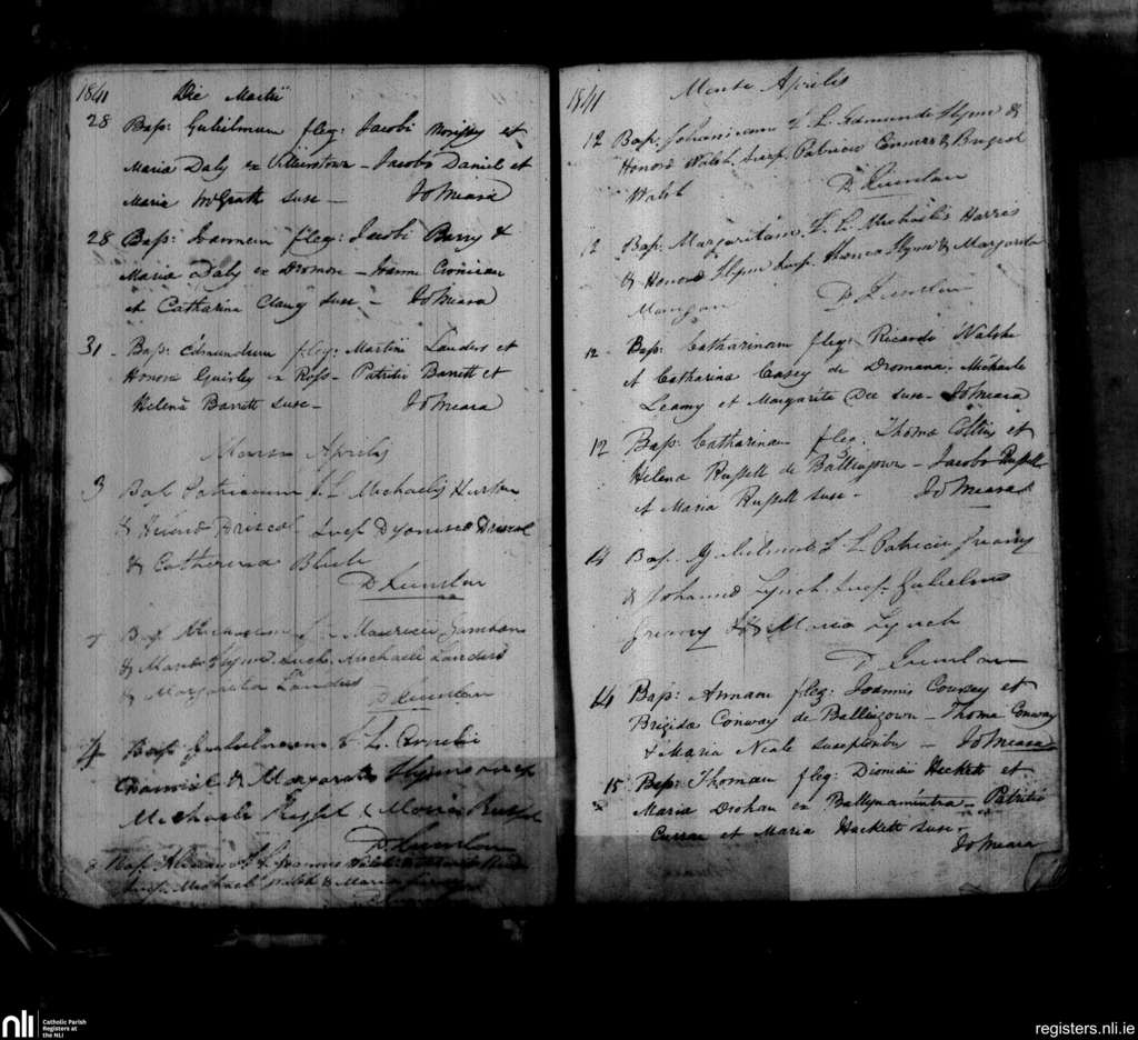 Aglish; County of Waterford; Diocese of Waterford and Lismore. Baptisms, Mar. 1841 to Apr. 1841