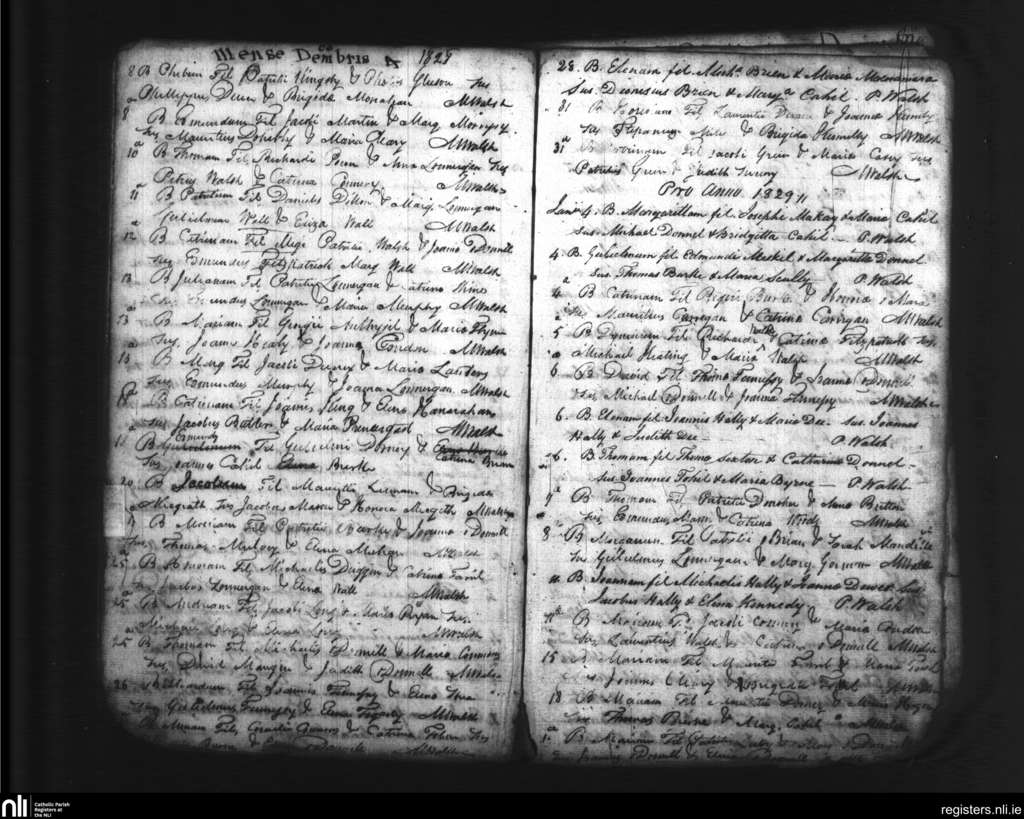 Ardfinnan; County of Tipperary; Diocese of Waterford and Lismore. Baptisms, Dec. 1828 to Jan. 1829