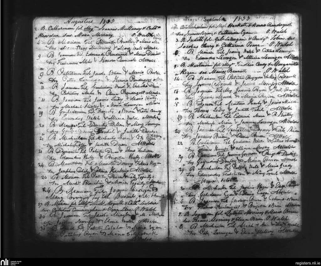 Ardfinnan; County of Tipperary; Diocese of Waterford and Lismore. Baptisms, Aug. 1833 to Oct. 1833