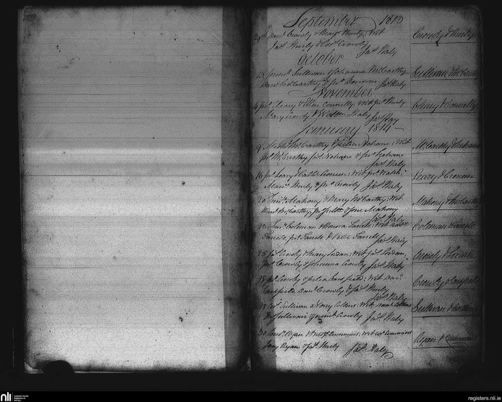 Enniskeane; County of Cork; Diocese of Cork and Ross. Marriages, Sep. 1813 to Jan. 1814