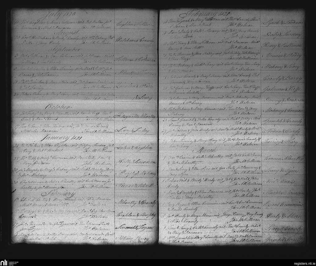 Enniskeane; County of Cork; Diocese of Cork and Ross. Marriages, July 1820 to Mar. 1821