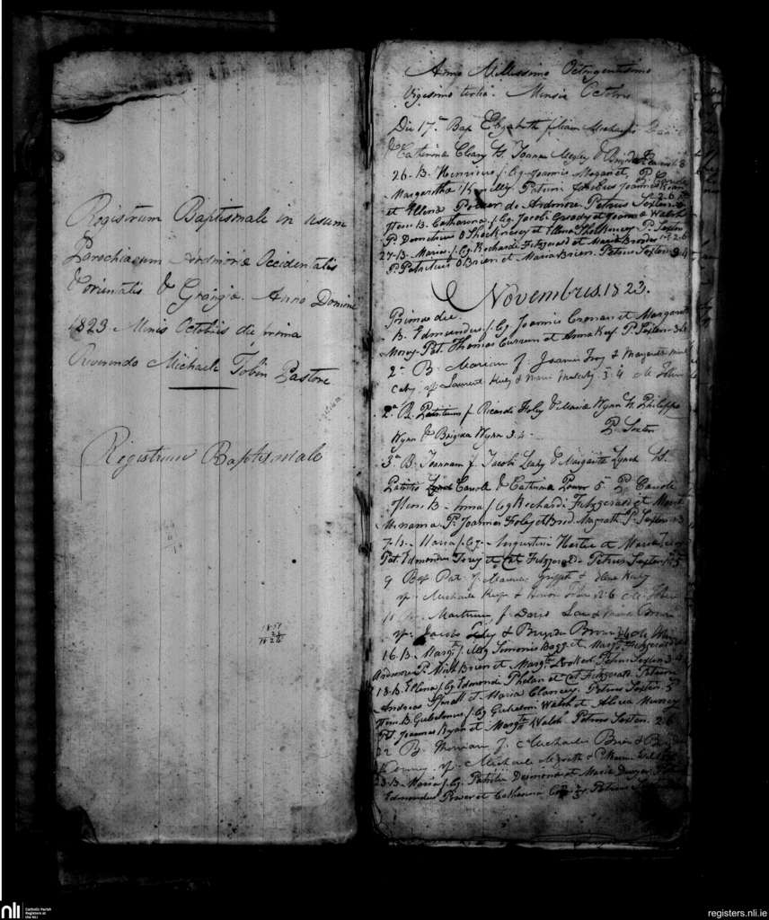 Ardmore and Grange; County of Waterford; Diocese of Waterford and Lismore. Baptisms, Oct. 1823 to Nov. 1823
