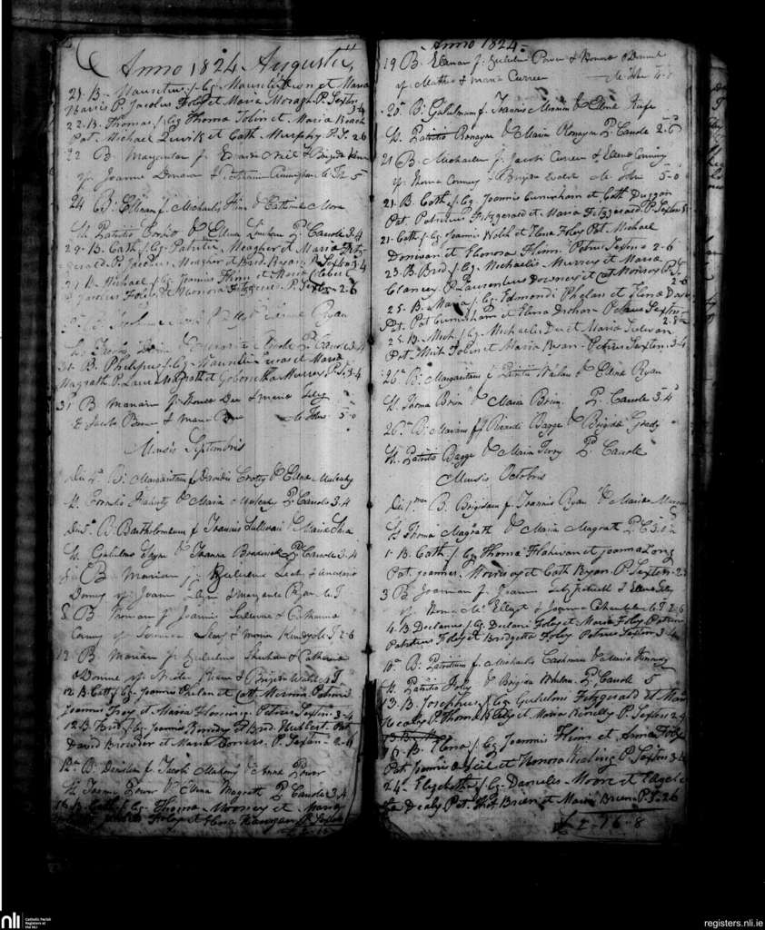 Ardmore and Grange; County of Waterford; Diocese of Waterford and Lismore. Baptisms, Aug. 1824 to Oct. 1824