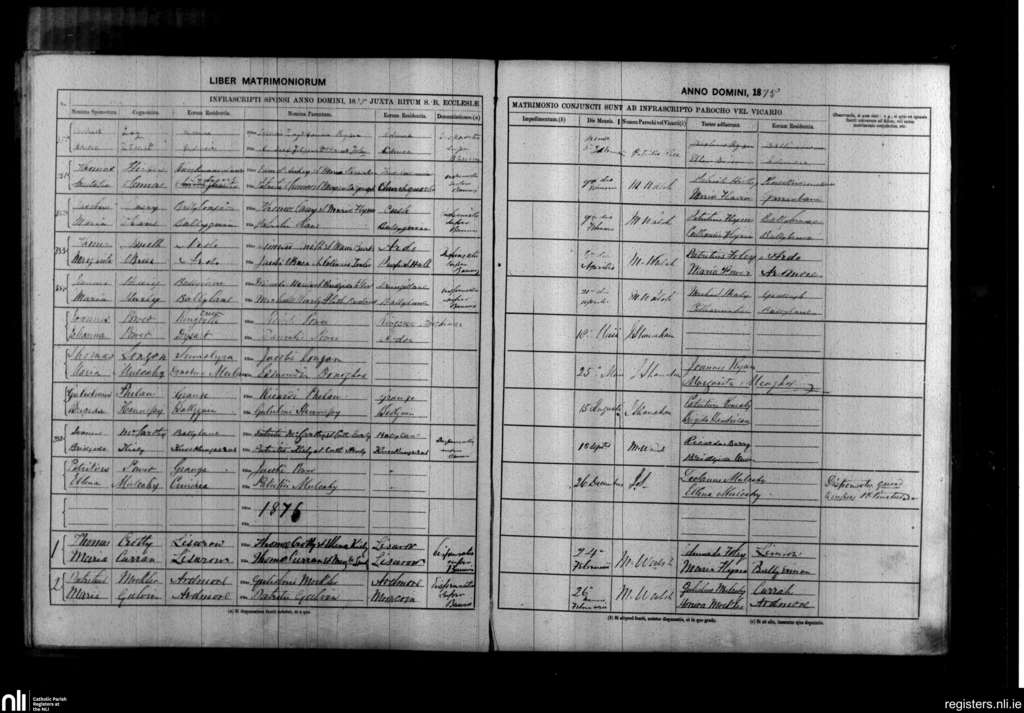 Ardmore and Grange; County of Waterford; Diocese of Waterford and Lismore. Marriages, Feb. 1875 to Feb. 1876
