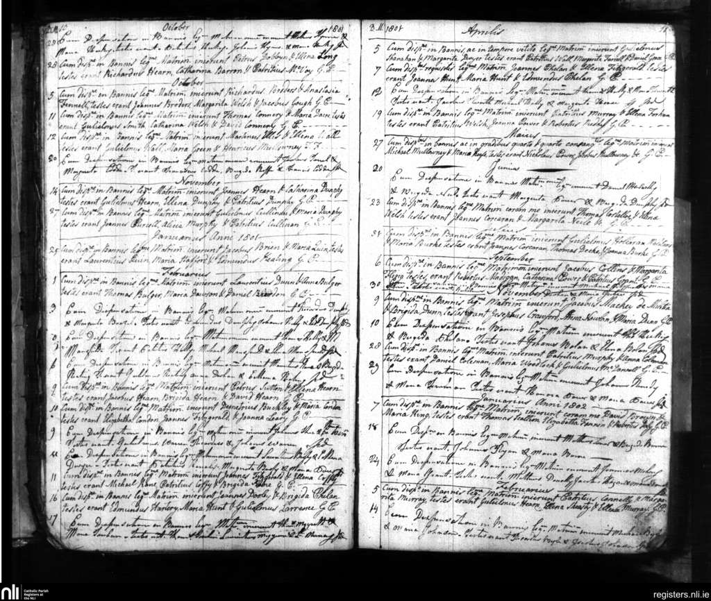 Ballybricken, Waterford city; County of Waterford; Diocese of Waterford and Lismore. Marriages, Oct. 1800 to Feb. 1802