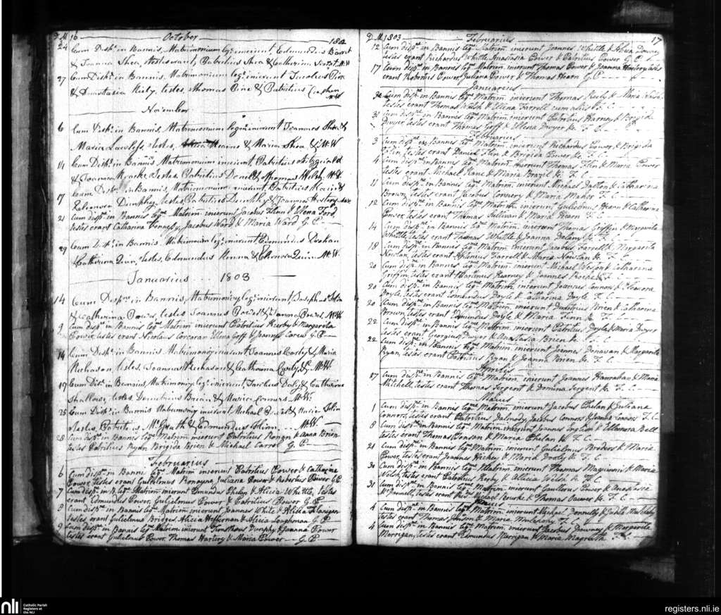Ballybricken, Waterford city; County of Waterford; Diocese of Waterford and Lismore. Marriages, Oct. 1802 to June 1803
