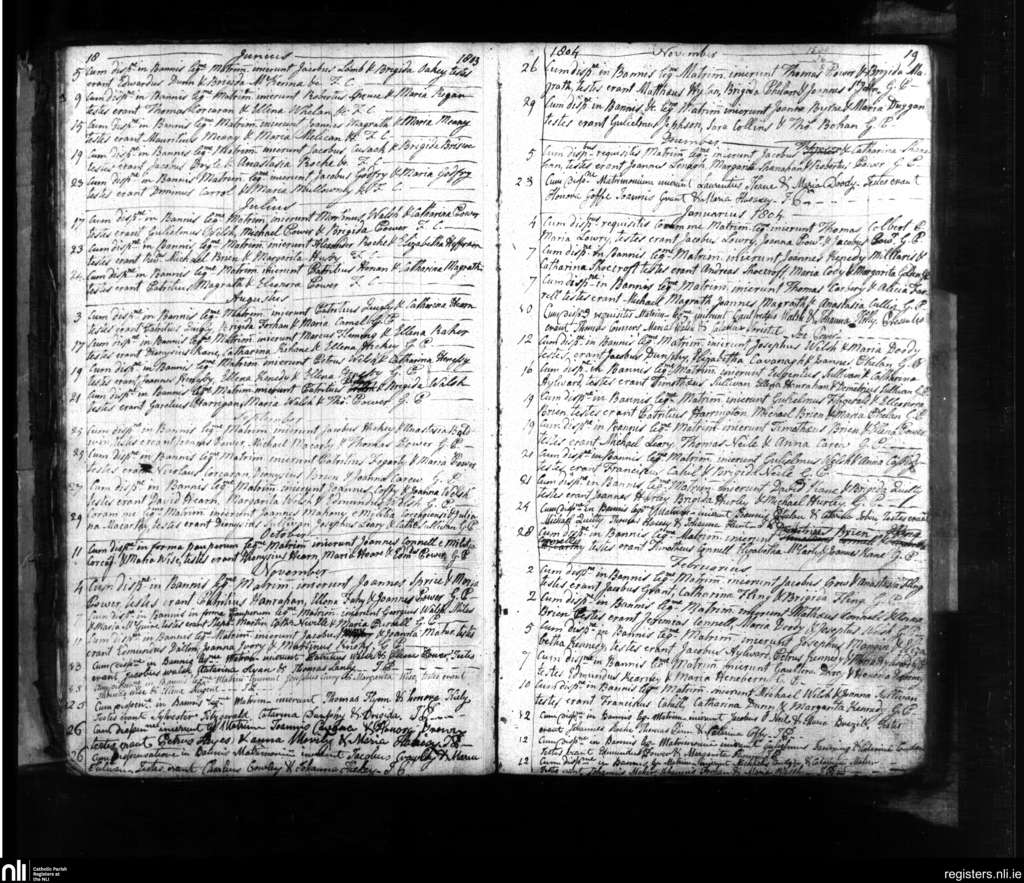 Ballybricken, Waterford city; County of Waterford; Diocese of Waterford and Lismore. Marriages, June 1803 to Feb. 1804