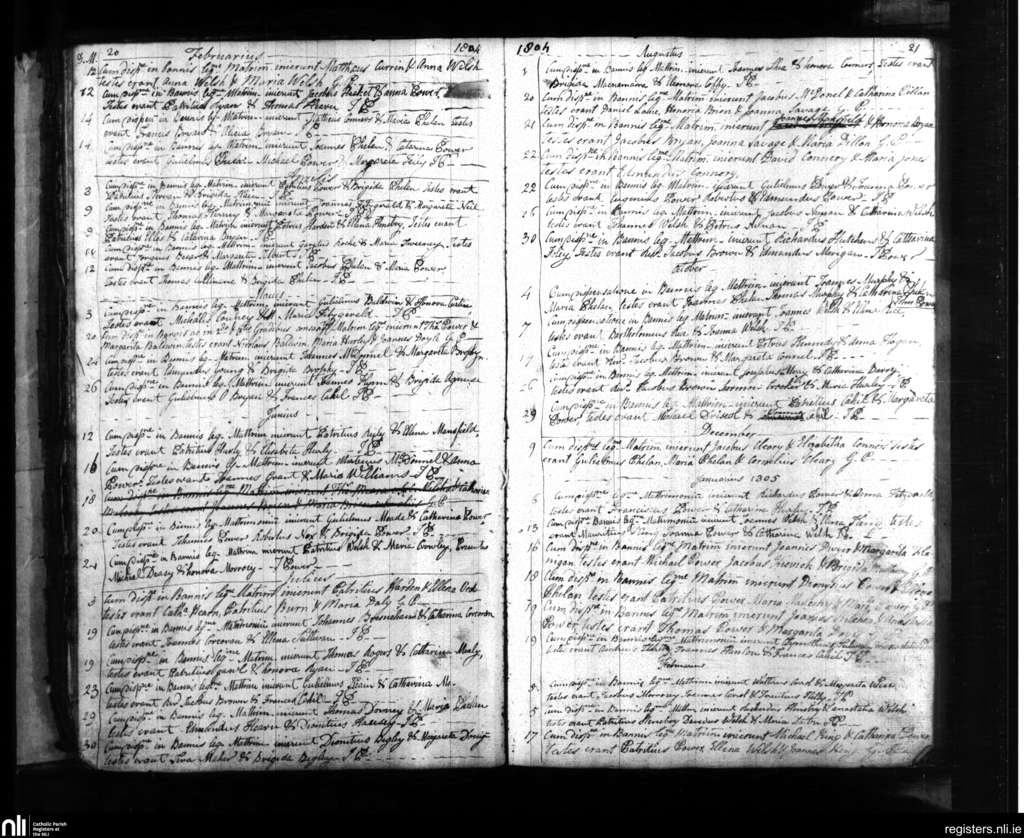 Ballybricken, Waterford city; County of Waterford; Diocese of Waterford and Lismore. Marriages, Feb. 1804 to Feb. 1805