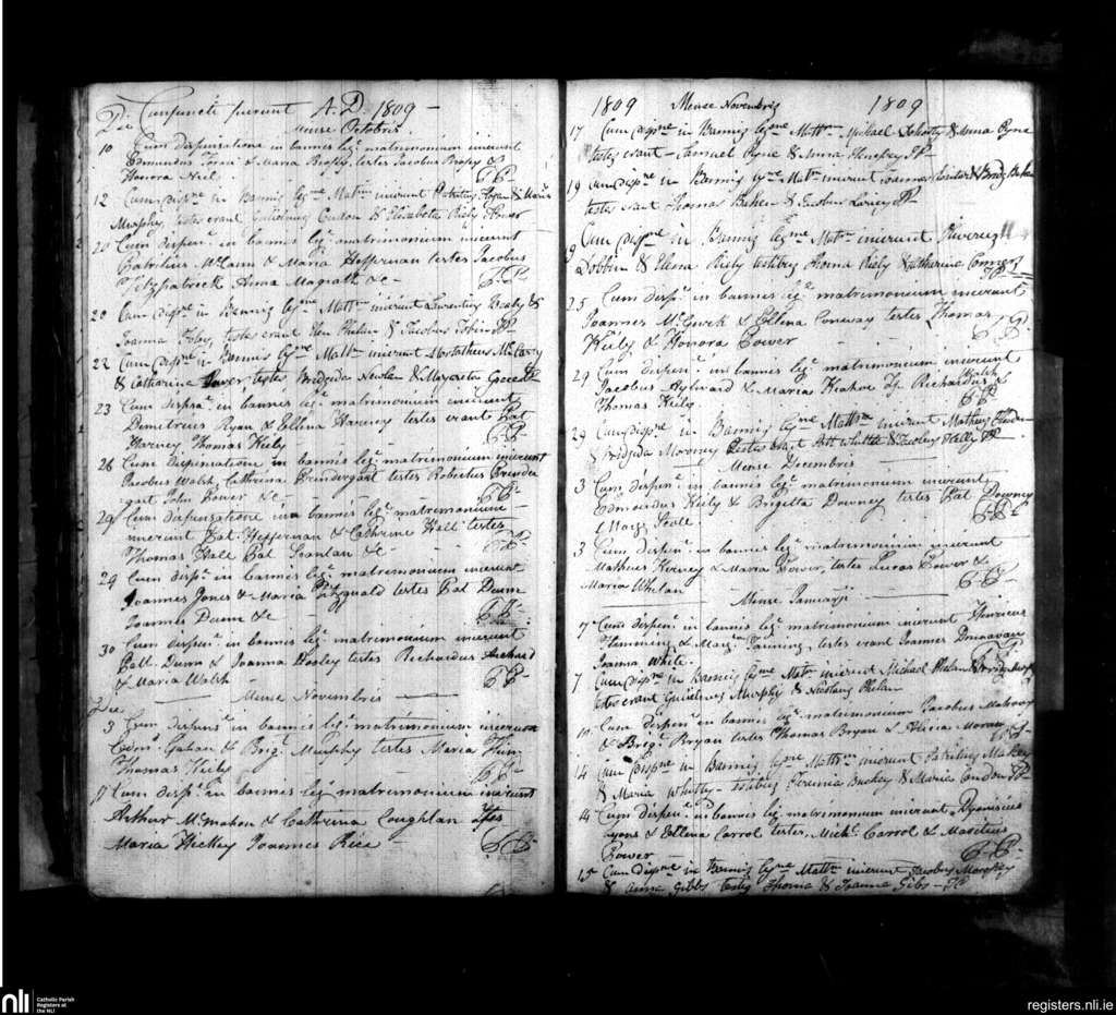 Ballybricken, Waterford city; County of Waterford; Diocese of Waterford and Lismore. Marriages, Oct. 1809 to Jan. 1810