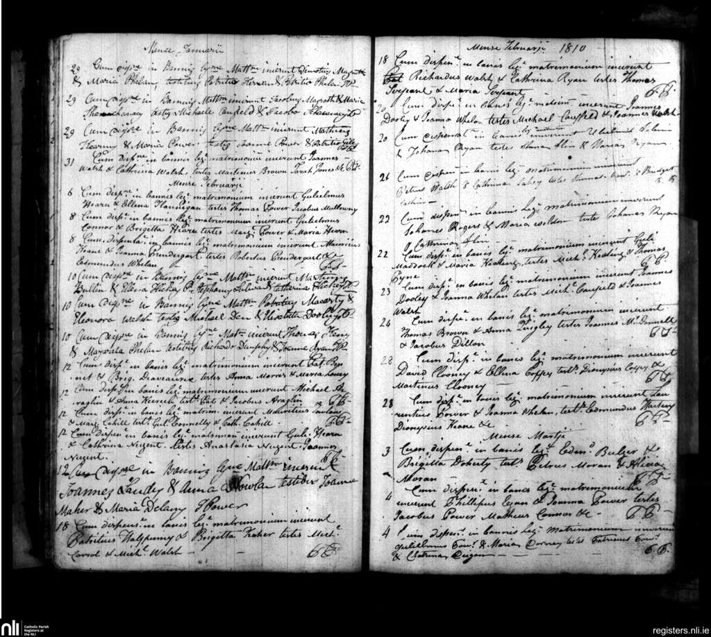 Ballybricken, Waterford city; County of Waterford; Diocese of Waterford and Lismore. Marriages, Jan. 1810 to Mar. 1810